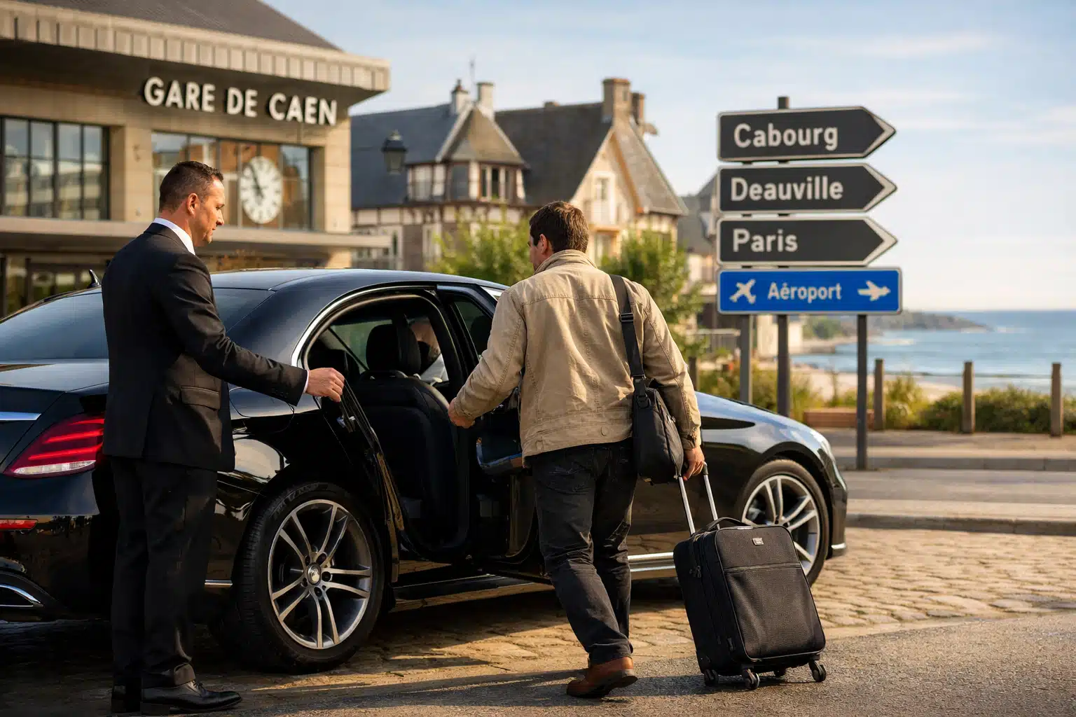 Le service permet d’organiser un transfert vers la gare de Caen, l’aéroport de Caen Carpiquet ou toute destination en Normandie et en France.
